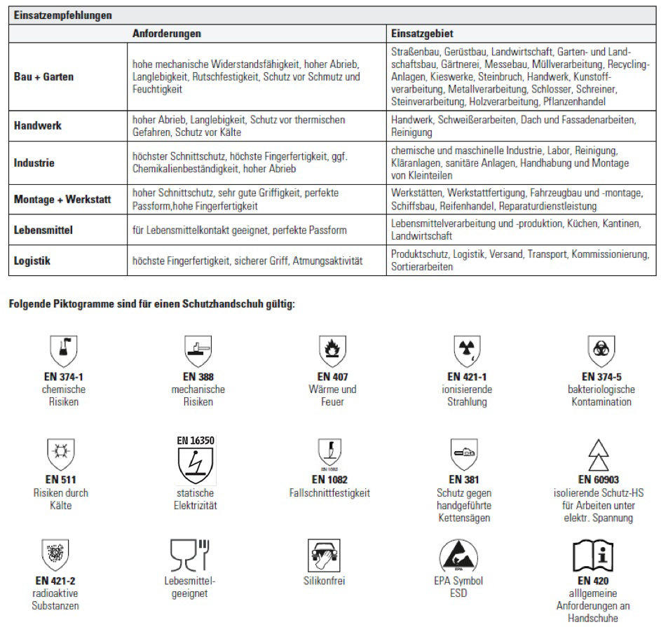 Für die Anwendung der Schutzhandschuhe ist es unerlässlich dass wir die Kennzeichnung lesen
