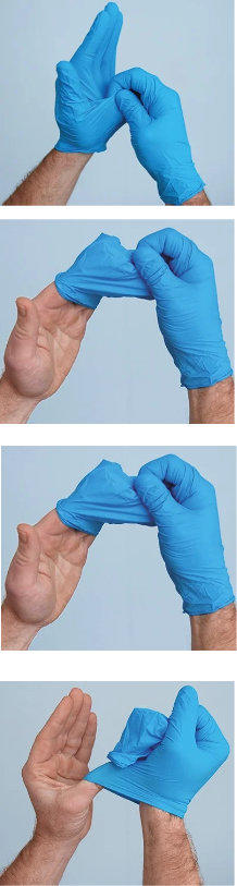 2. Den Handschuh ganz abziehen und weiterhin