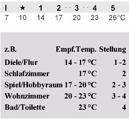 Heizkörperthermostaten entsprechend der Tabelle ein. Die ma-