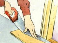 gekröpften Feinsäge oder einem biegsamen Fuchsschwanz die Zarge passgenau in Höhe der