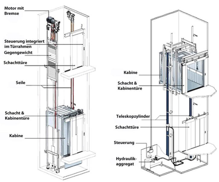 Seil- & Hydraulikaufzug im Vergleich
