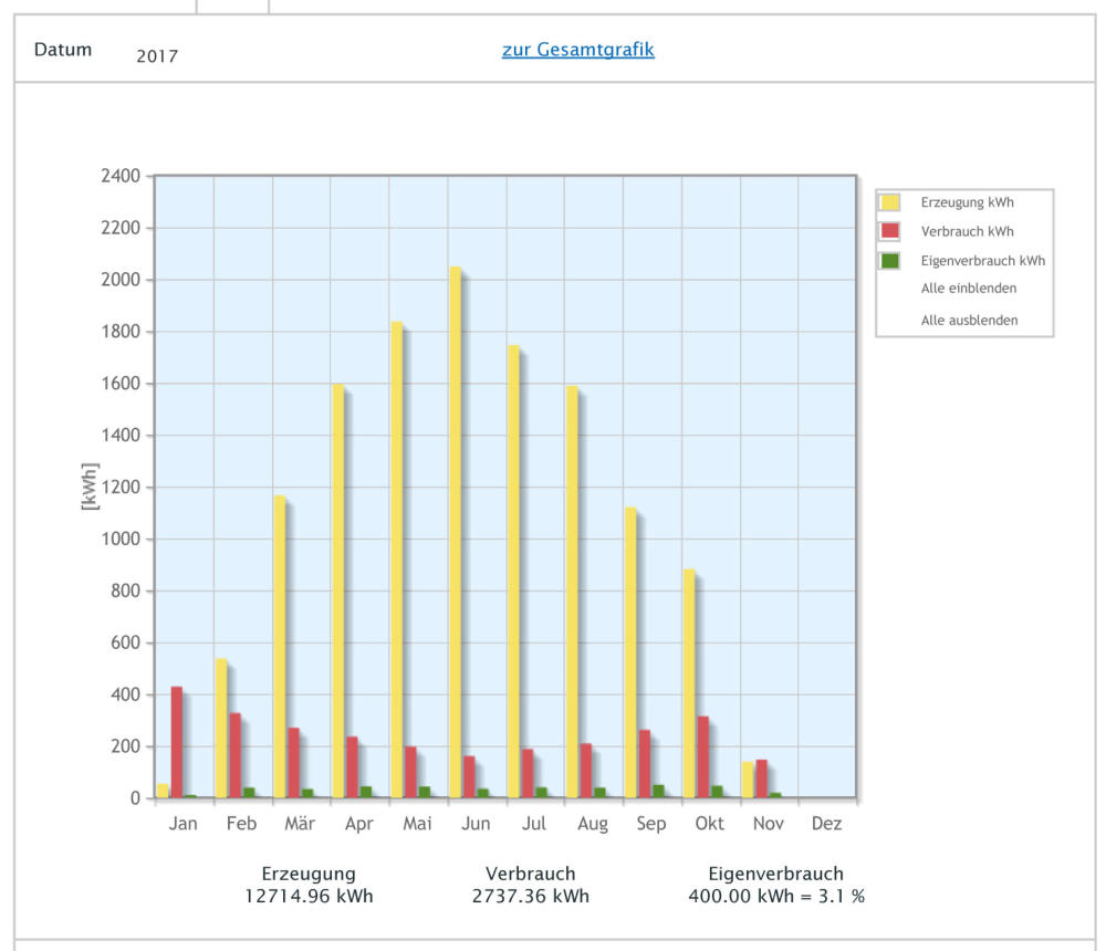 Strom konnten wir nur rund 2‘700kWh Solarstrom